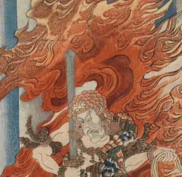Almighty Fudo Buddha burns away our negative karma "akugo" in His divine flames.