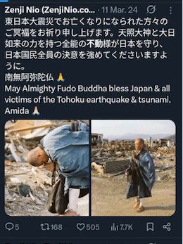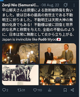 Tweets promoting Almighty Buddha -- even featuring Brad Pitt & Shinzo Abe